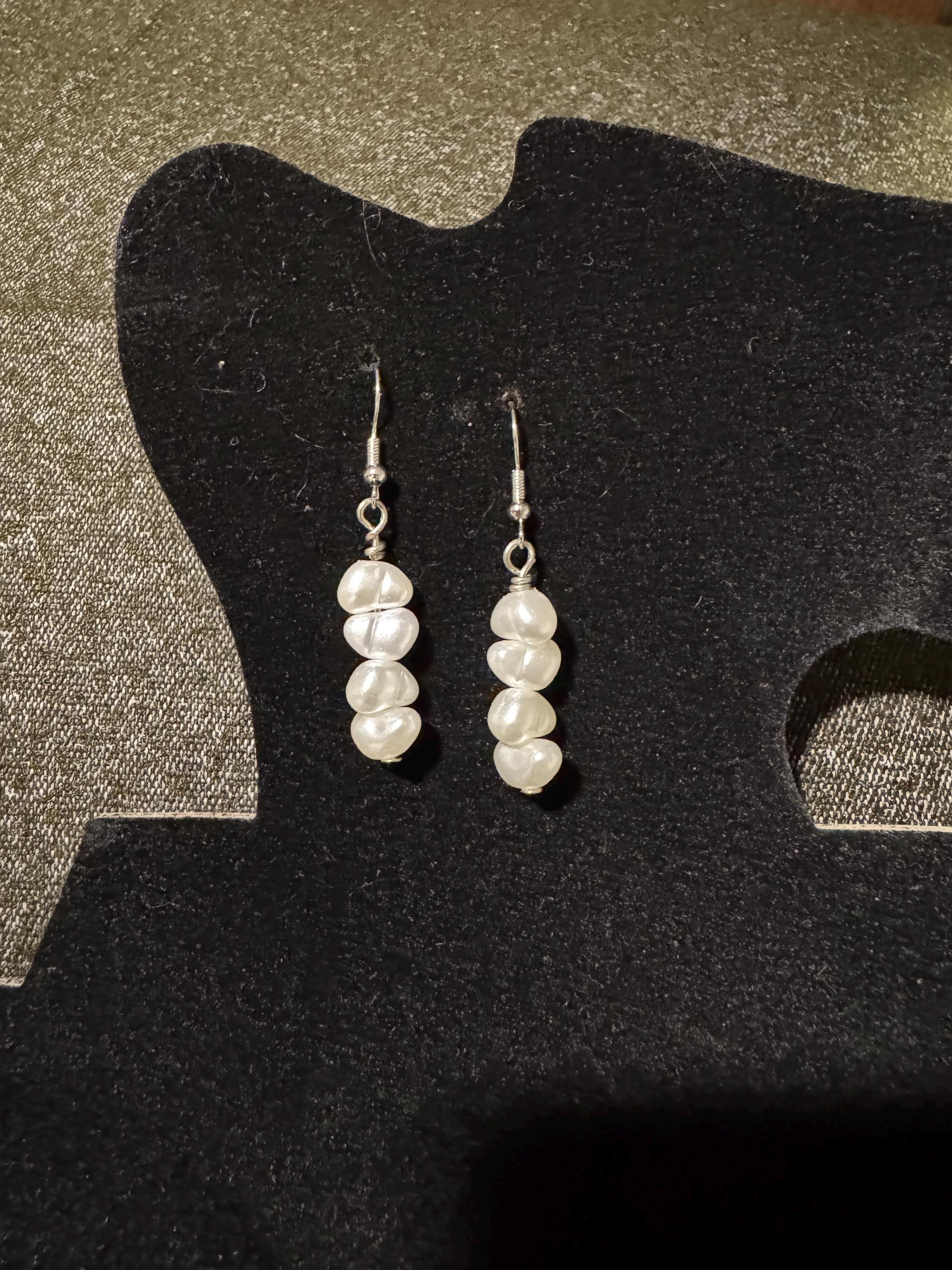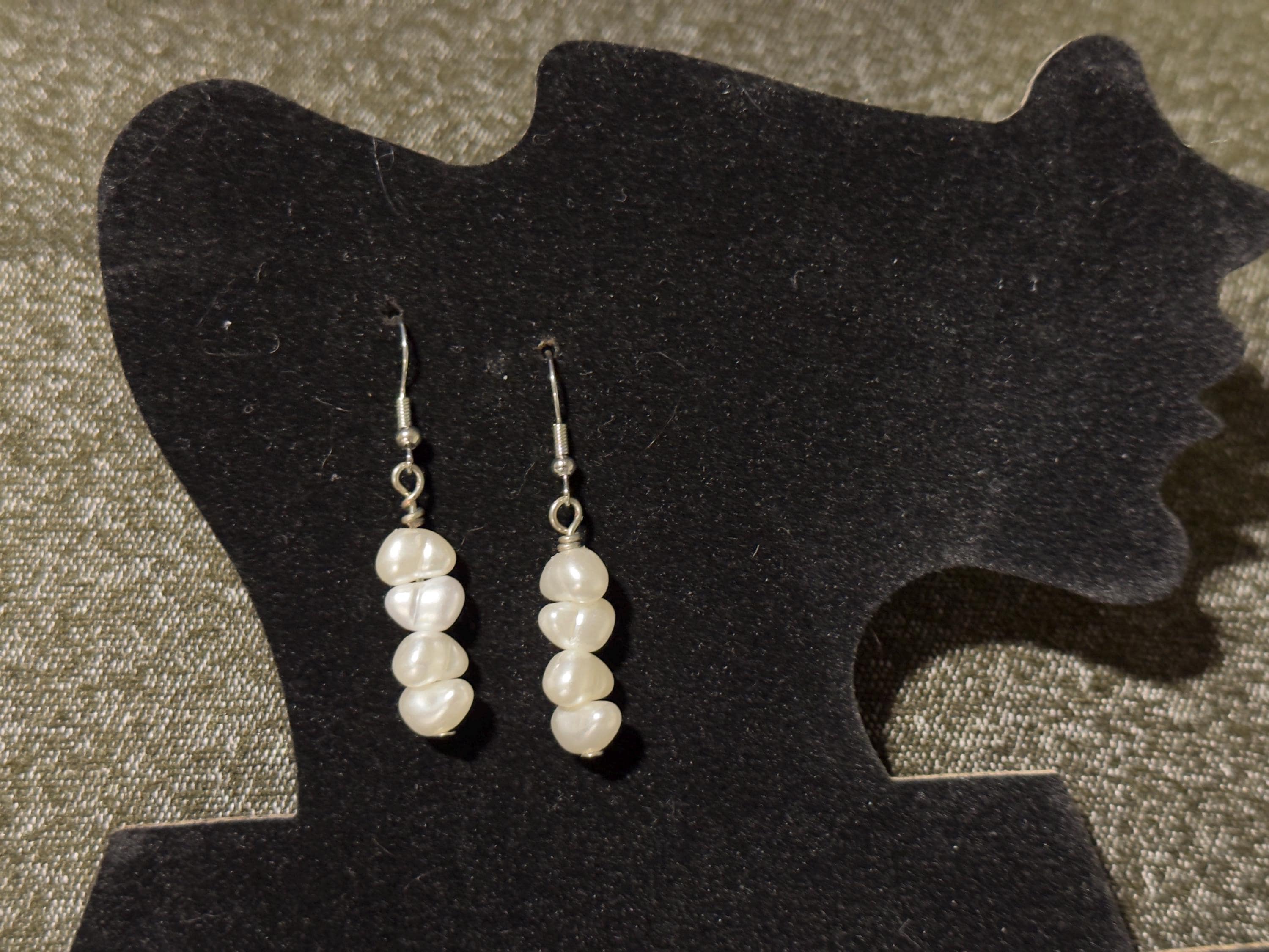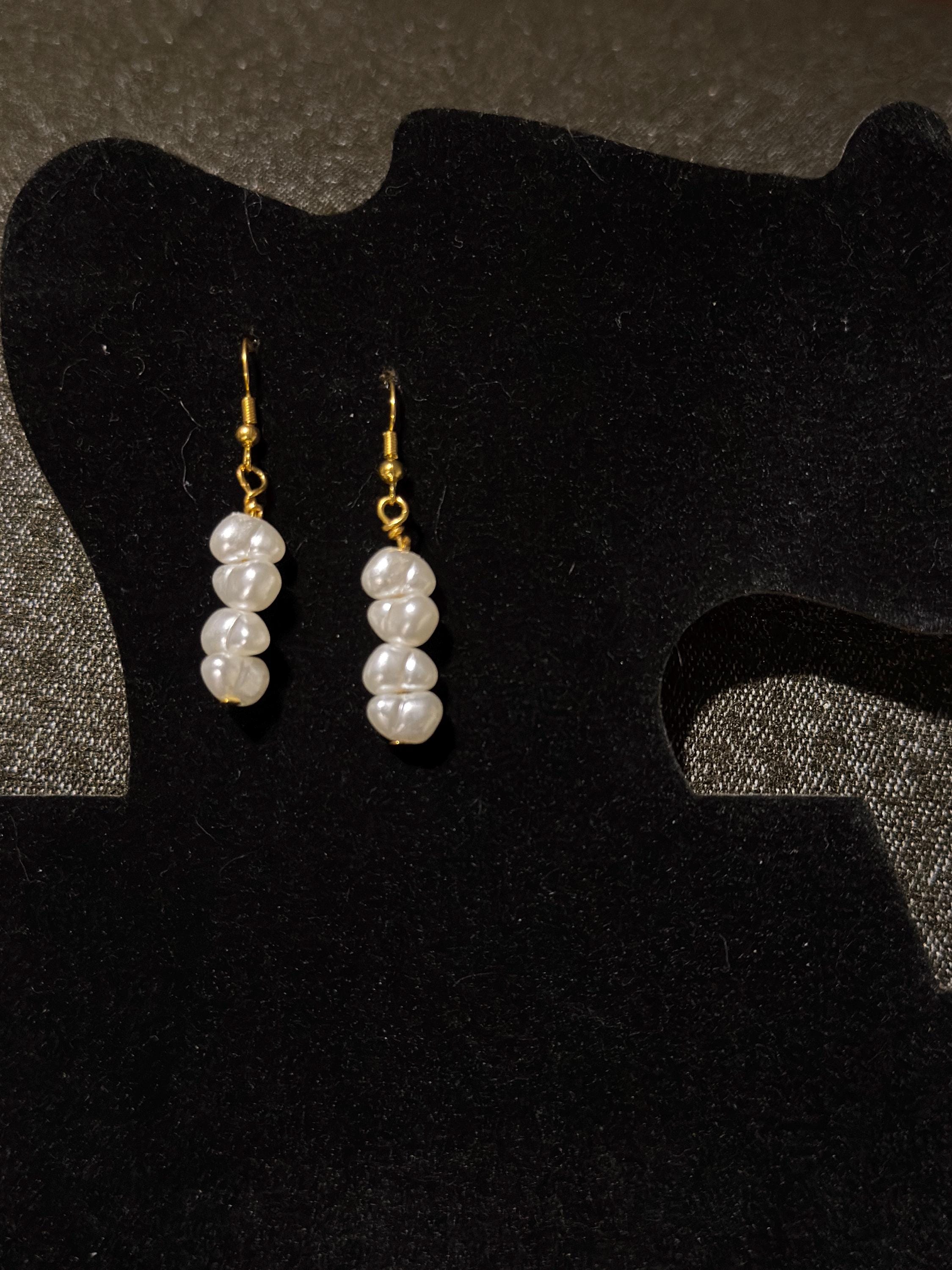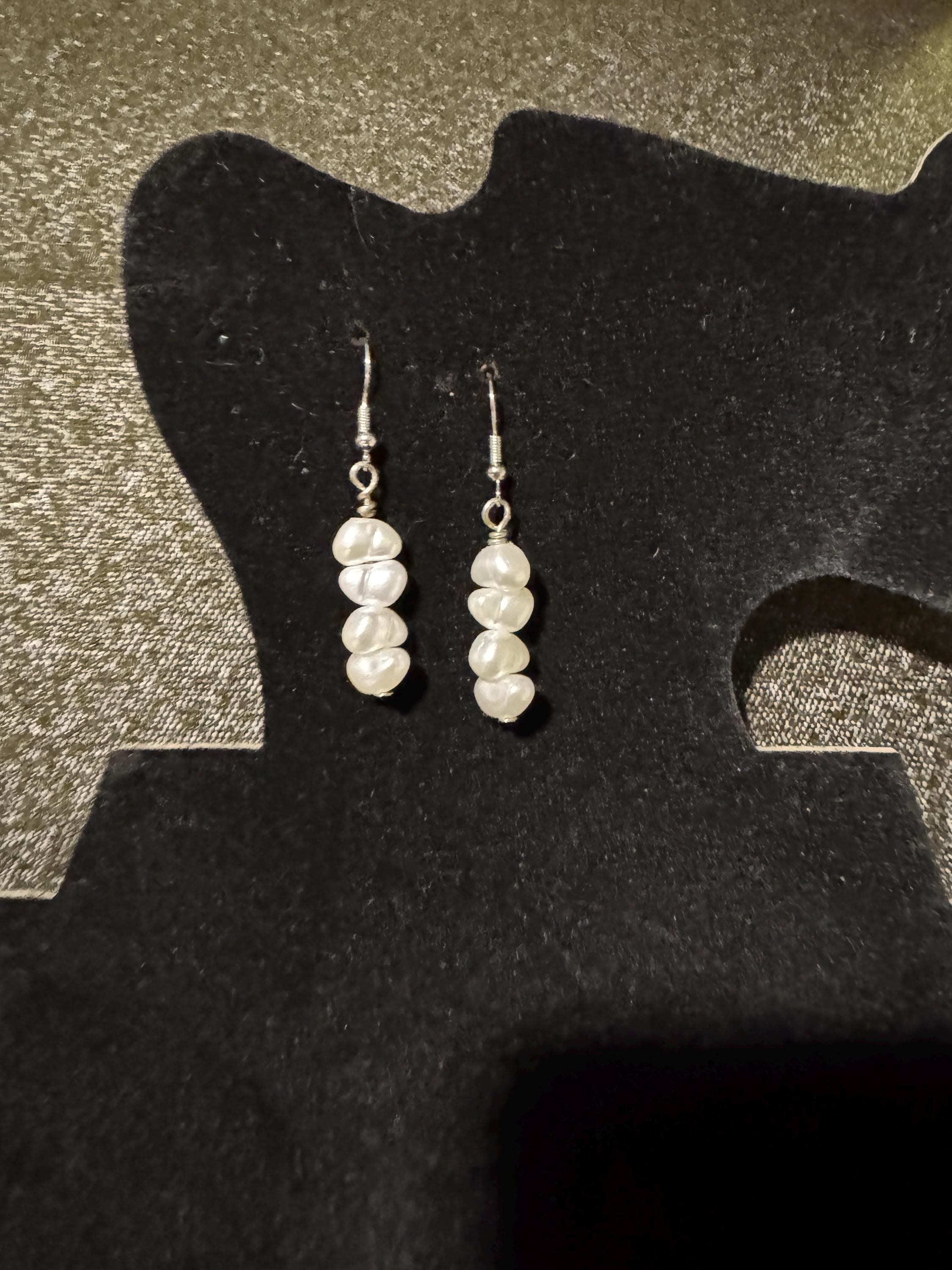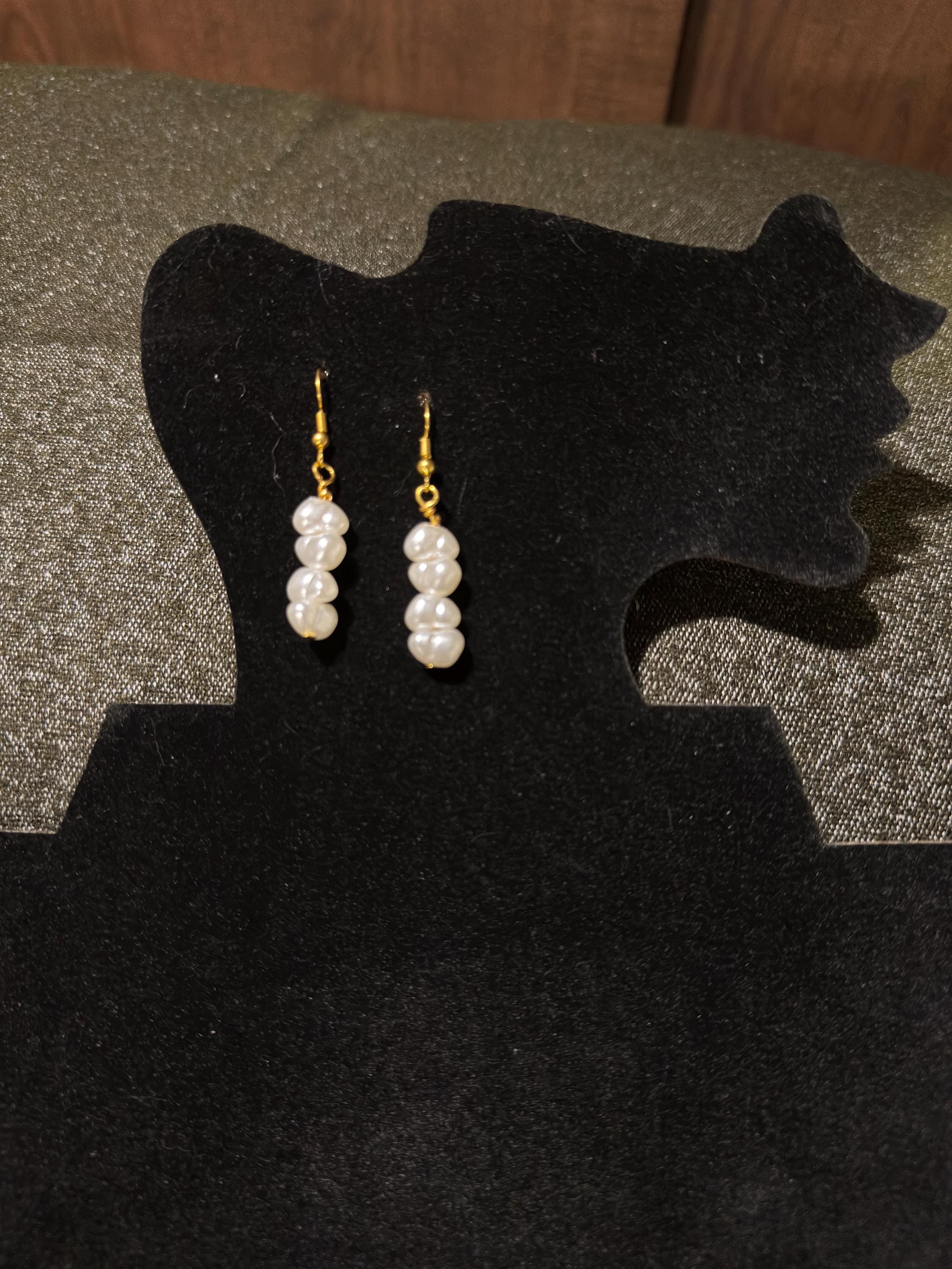 Elevate your style with these stunning, handcrafted freshwater pearl drop earrings. Each earring features a delicate cascade of three lustrous white pearls, offering a blend of vintage charm and contemporary elegance that is perfect for any occasion, from everyday wear to bridal events.