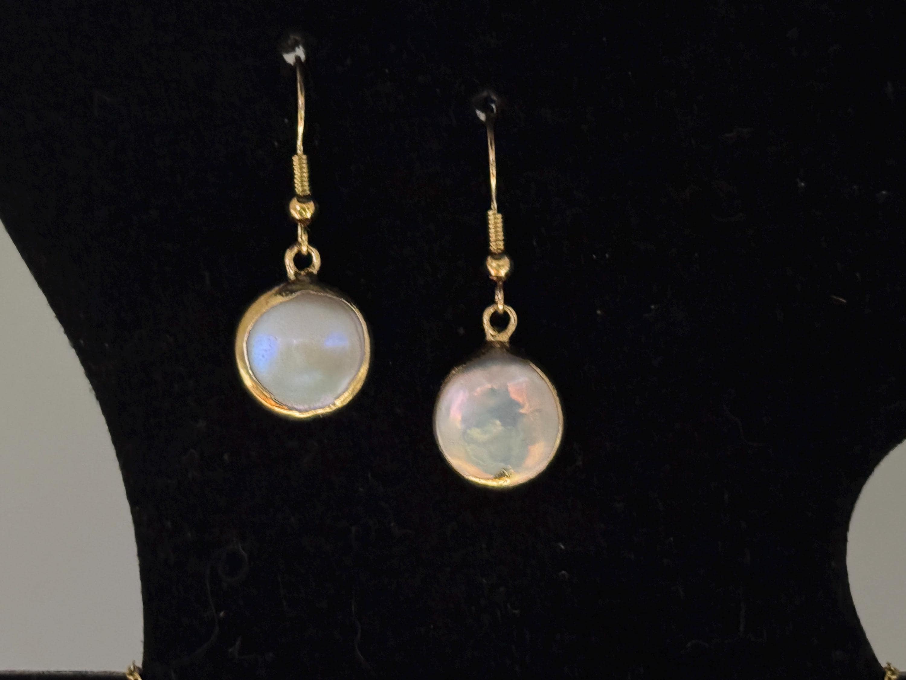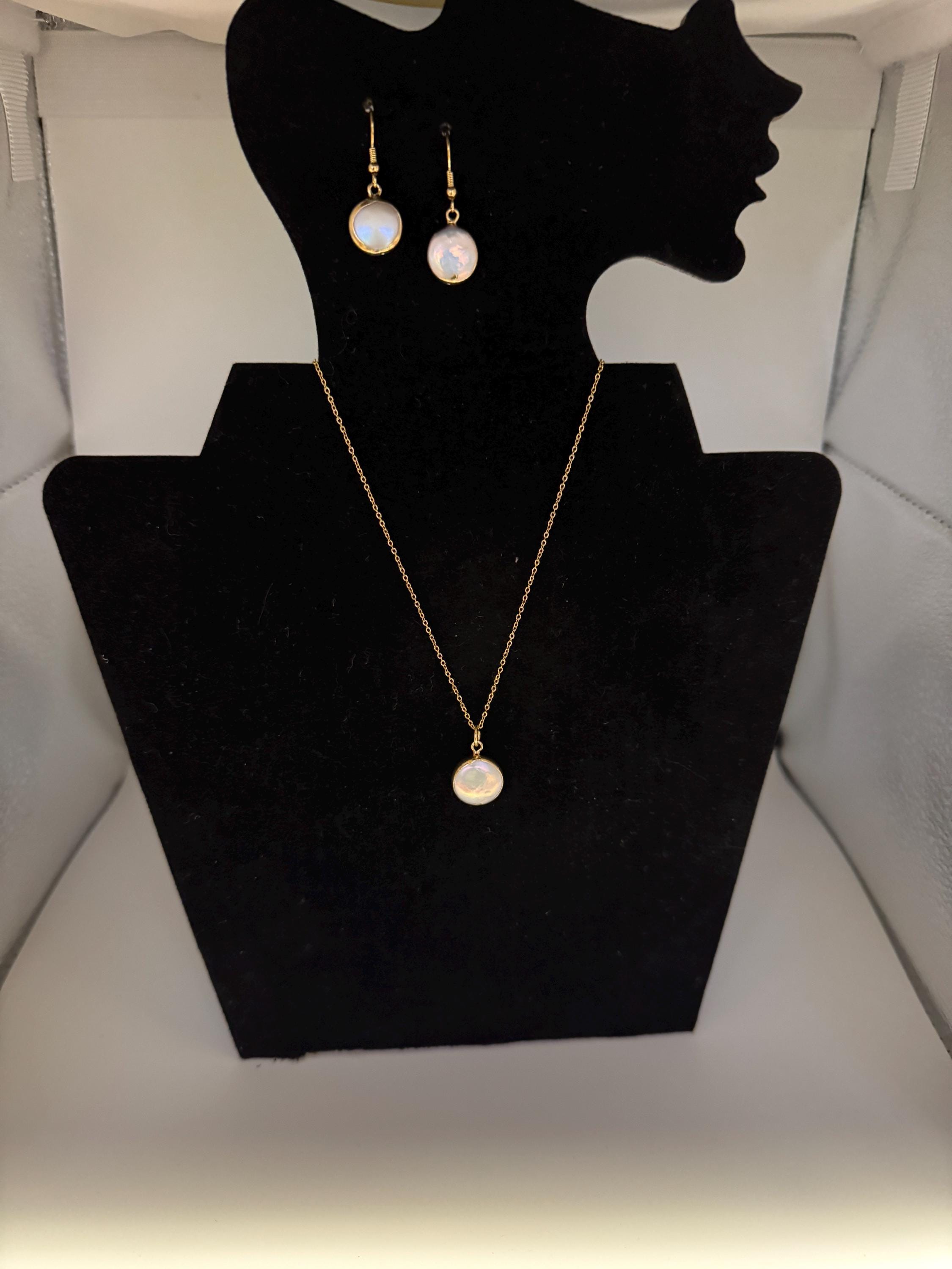 Elevate your style with this stunning and delicate Mother of Pearl jewelry set, perfect for everyday wear or special occasions. This set includes a beatiful pendant necklace and matching drop earrings, offering a touch of timeless elegance and natural beauty. Chain Dimensions: 1.1mm thickness x 47 cm length Earrings: .925 Gold toned (sterling silver)
