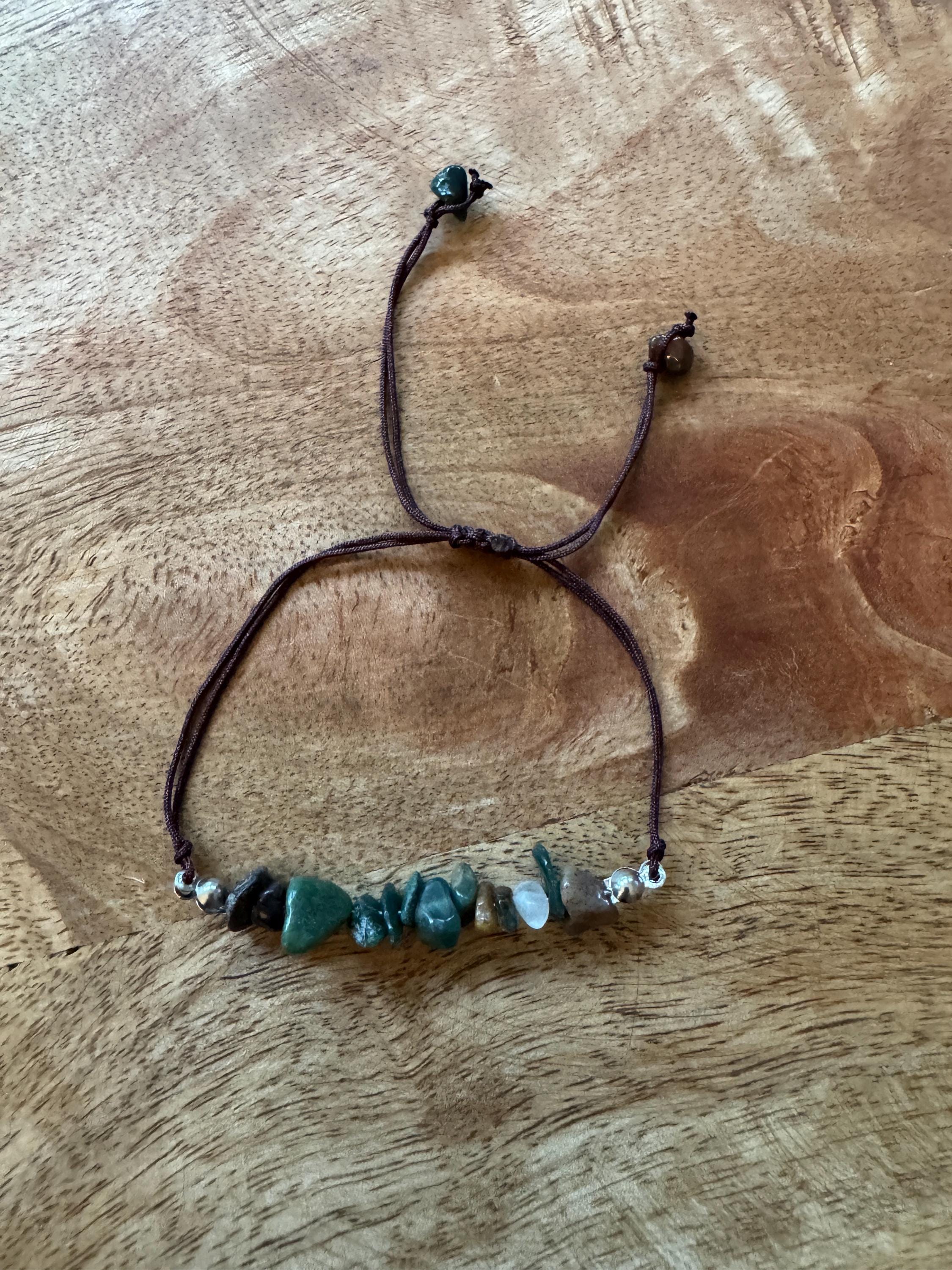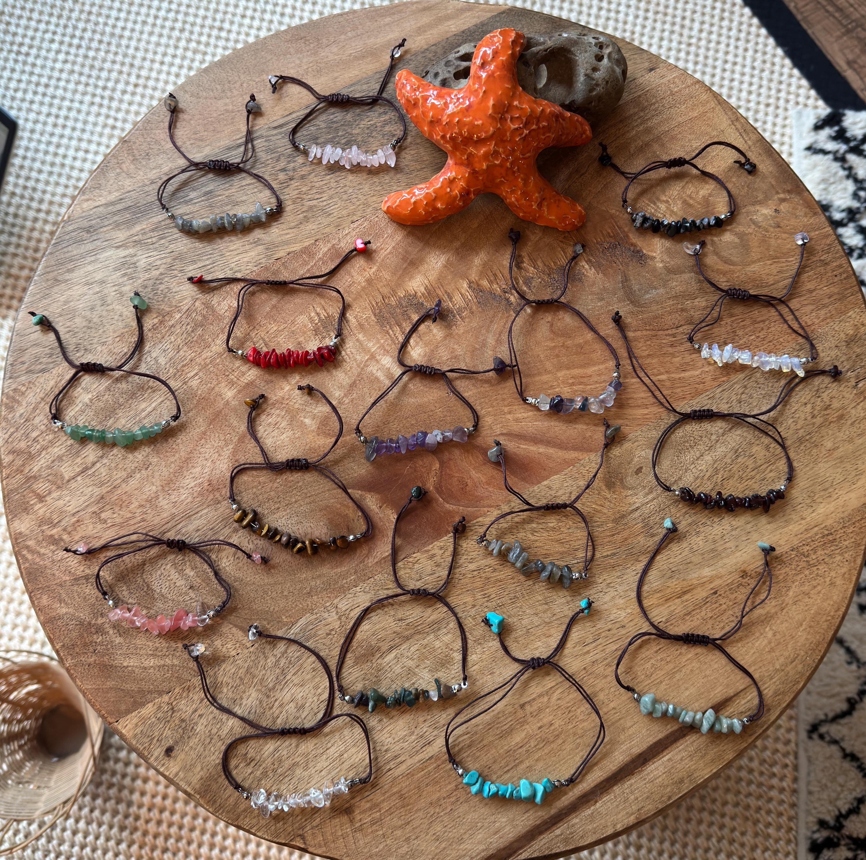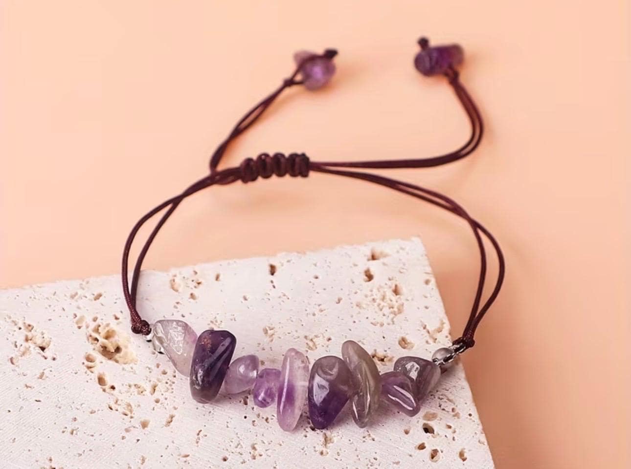 Discover the unique charm of our handmade natural gemstone bracelets, perfect for adding an earthy elegance to any outfit. Each piece features irregular shaped genuine crystal chip beads woven onto a durable adjustable brown rope band. These versatile wrist bands are designed to fit comfortably as bangles and make an ideal gift for yourself or a loved one. Whether you're drawn to the vibrant colors or the potential healing energy of natural stones, these bracelets offer a harmonious blend of style and holistic wellness.