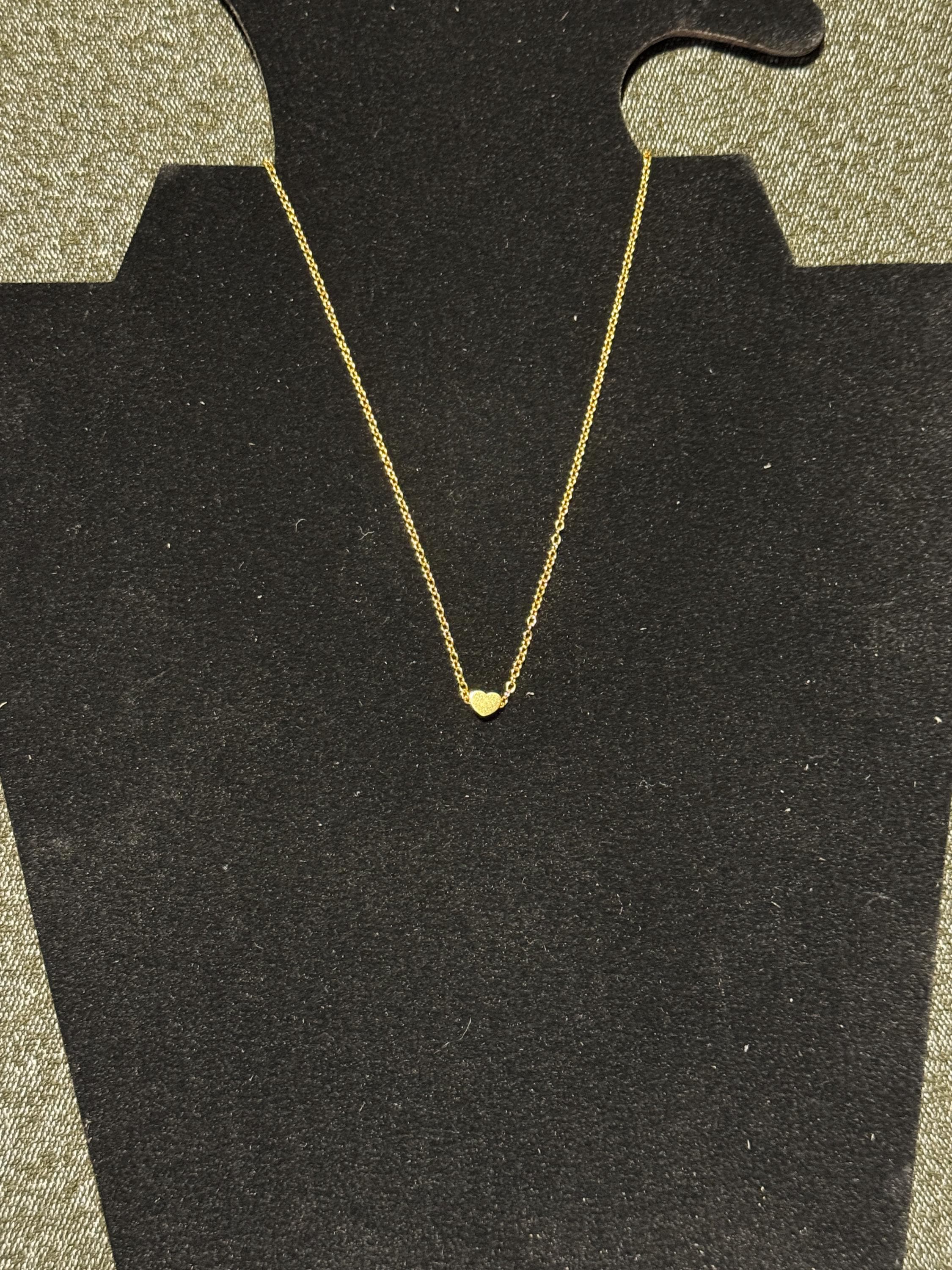 Design: A small, delicate heart charm in a warm gold tone.