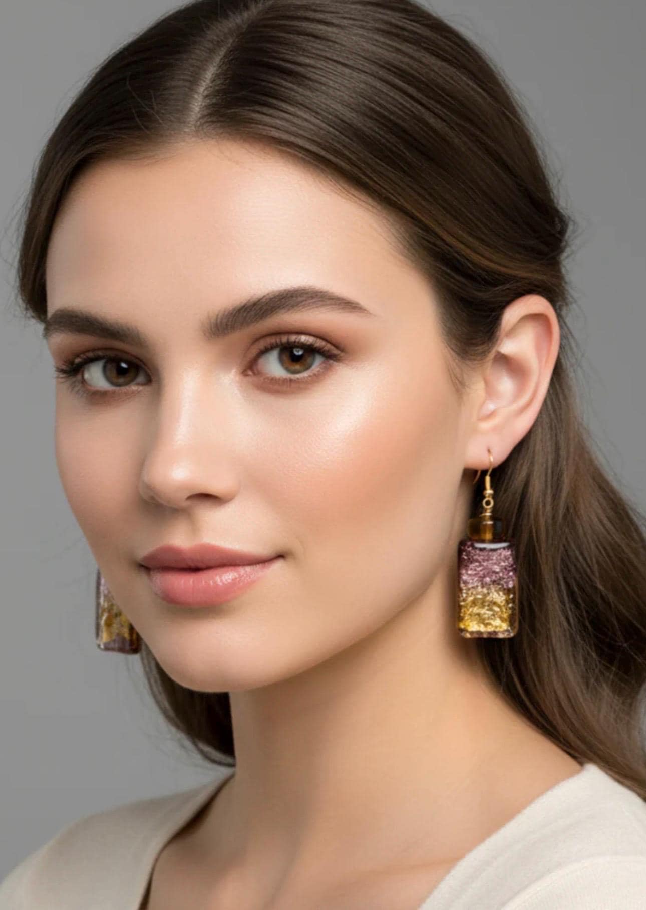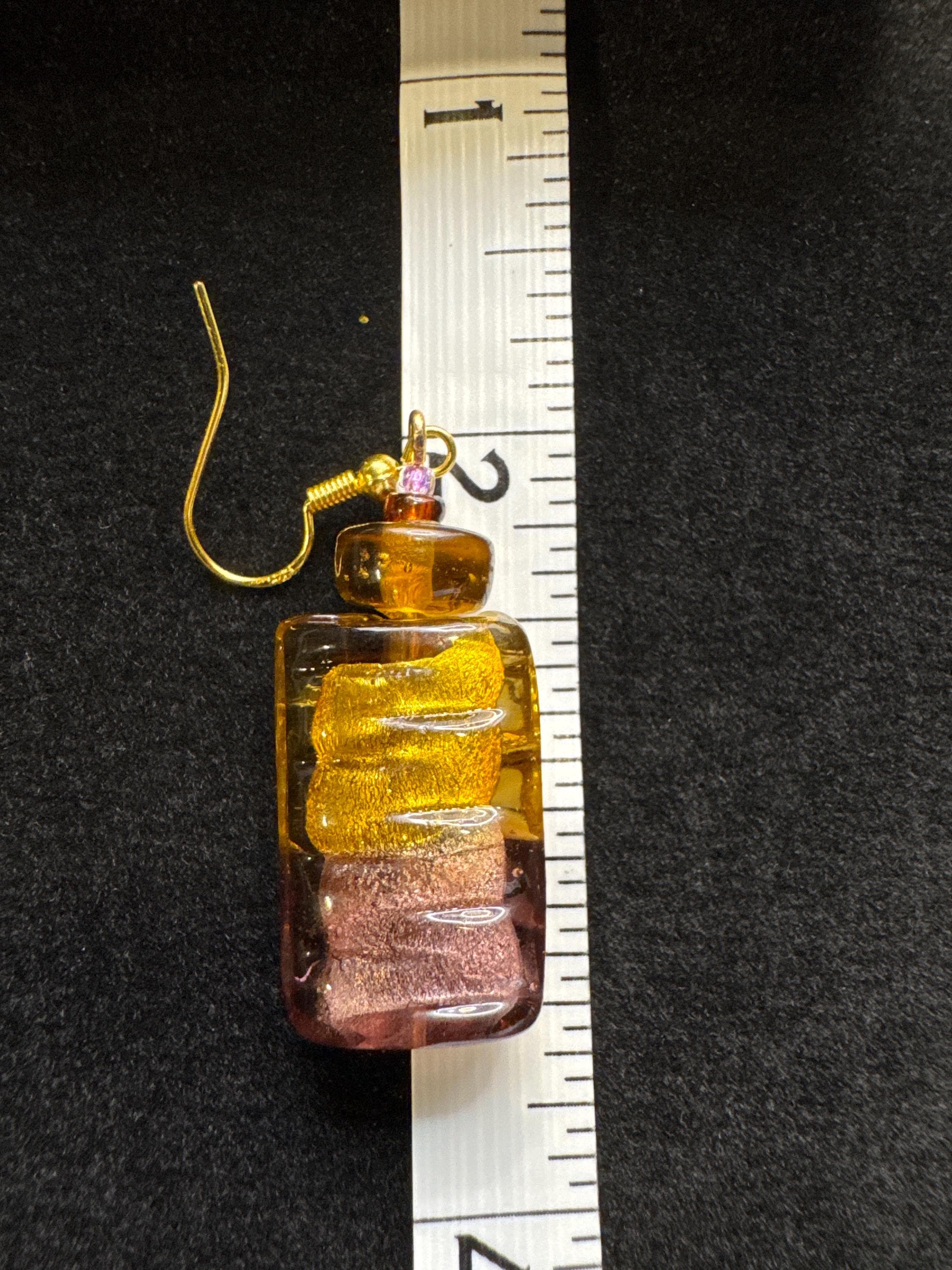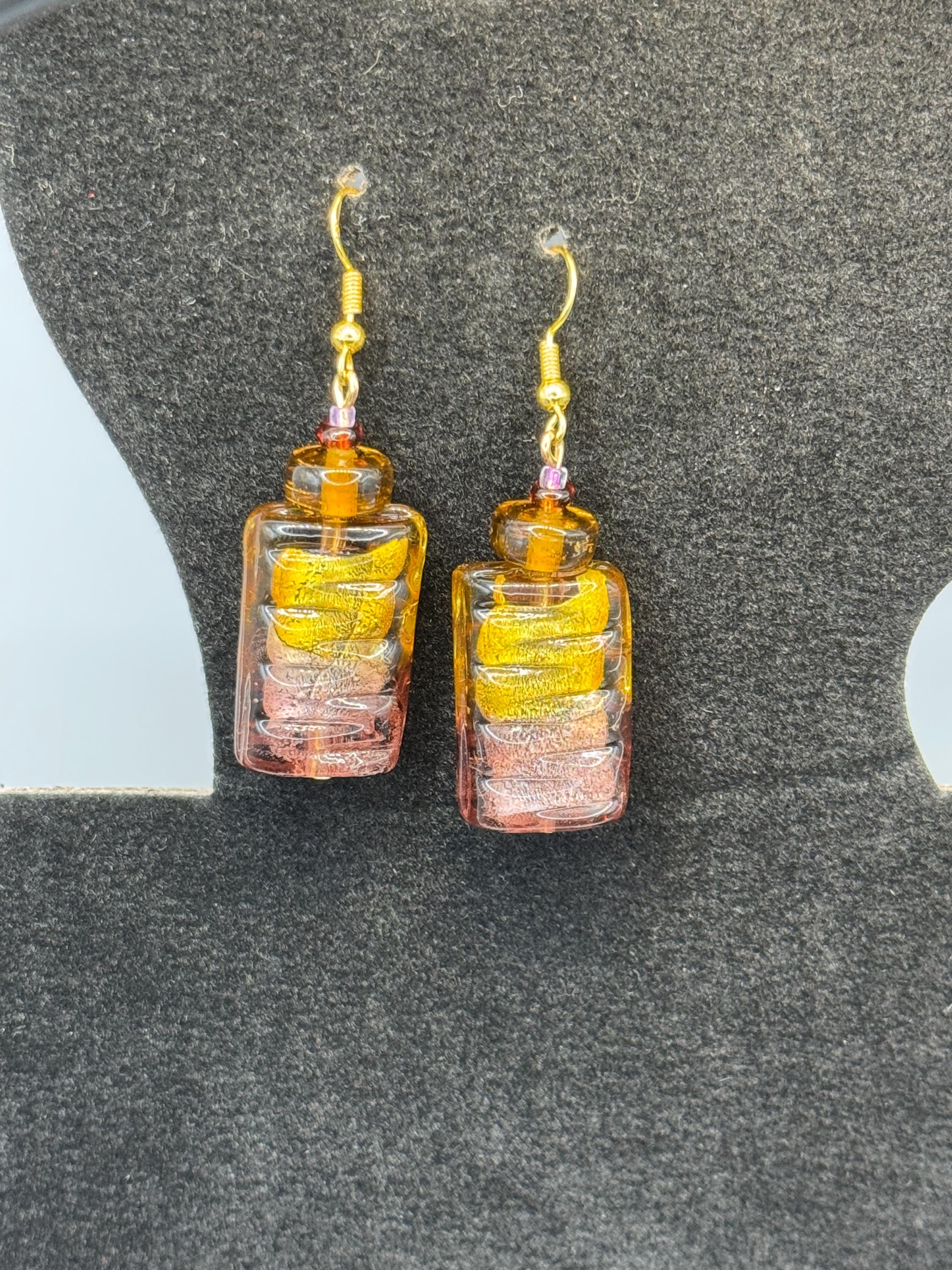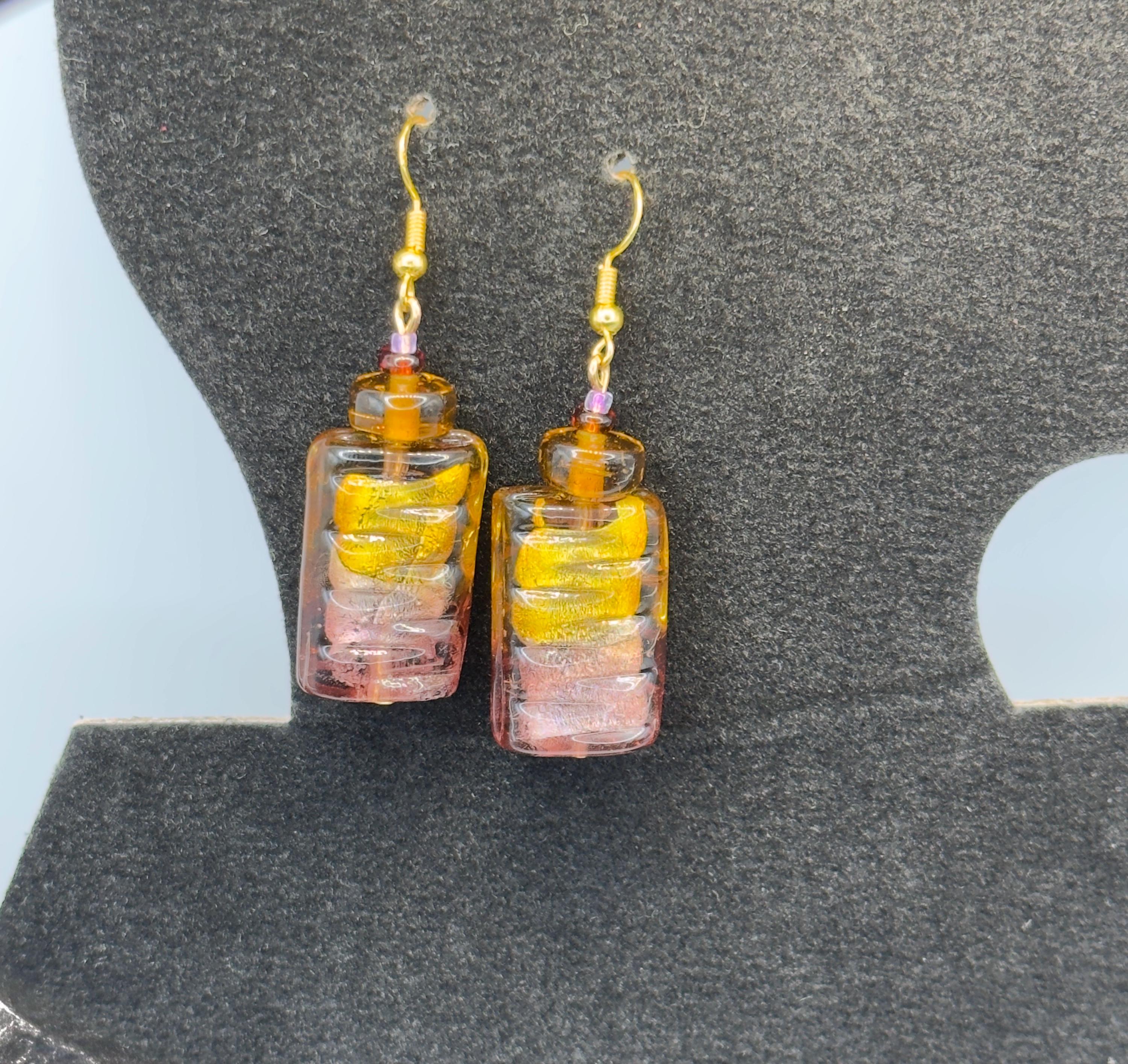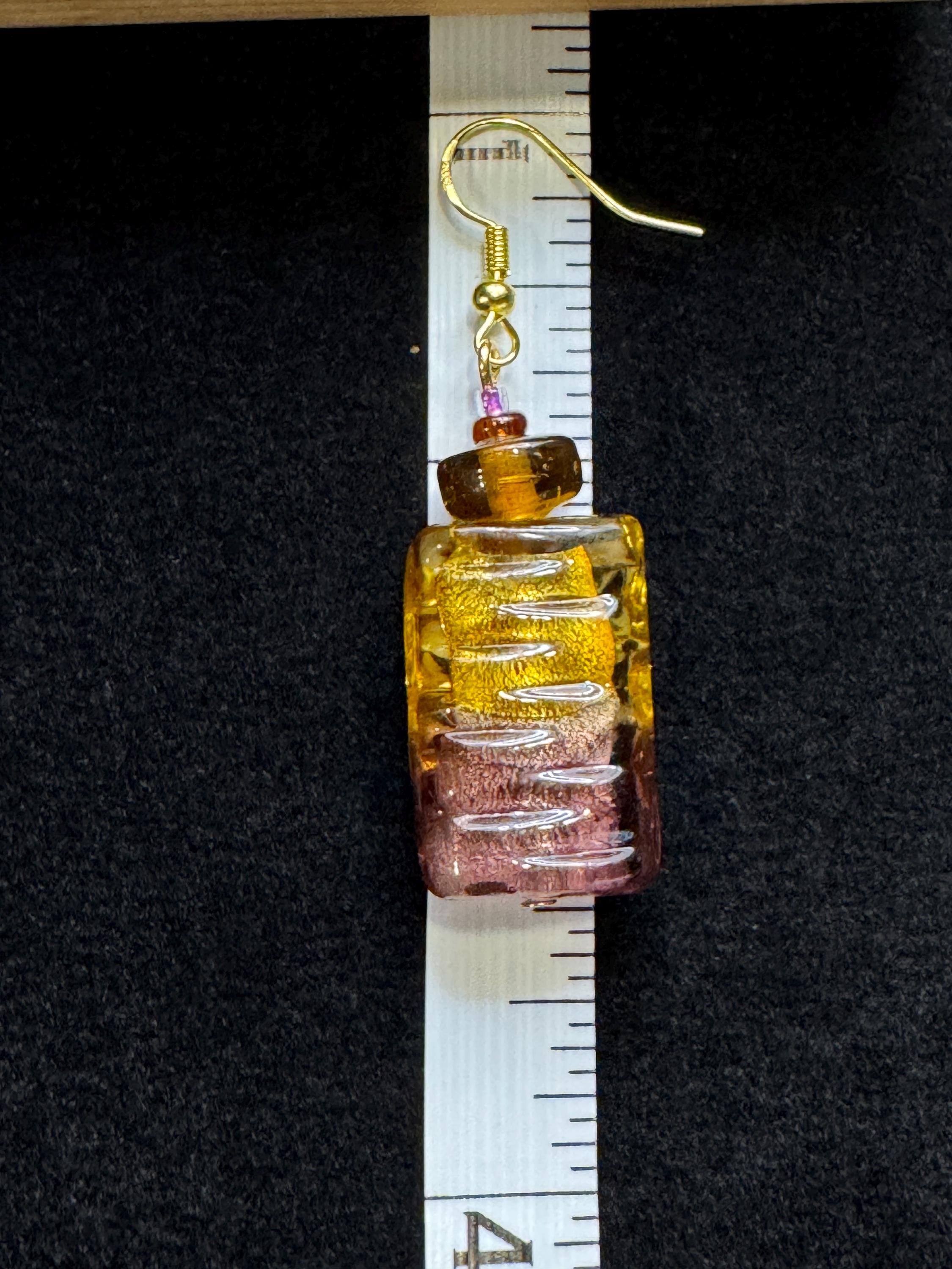 These earrings feature vintage Murano style lampwork beads repurposed from my grandmother’s jewelry — each one carrying a warm shimmer of history.